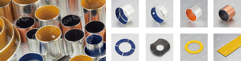 Metal-polymer marginal lubricating composite materials consist of metal backing sintered porous bronze with POM or PEEKpolymer as working layer. Steel backing provides exceptionally high load carrying capacity, excellent heat dissipation. Sintered bronze powder provides thermal conductivity away from the bearing surface, also serves as a reservoir for the resin mixture.And the POM or PEEK polymer layer provides high wear resistance and low friction even with only minute volume of lubricant are supplied, this bearing surface carries a pattern of circular indents which should be filled with grease on assembly of the bearing.