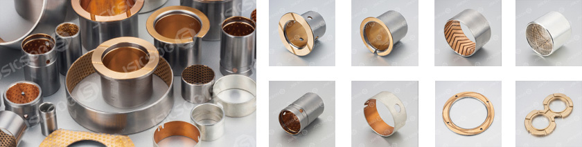 汽车行业:平衡轴衬套、钢板销衬套、转向节主肖轴套、连杆轴套、气门摇臂轴套、凸轮轴轴套、差速器轴套、变速箱轴套、内燃机主轴瓦、止推垫片;以及柱塞泵侧片,齿轮泵侧片等。